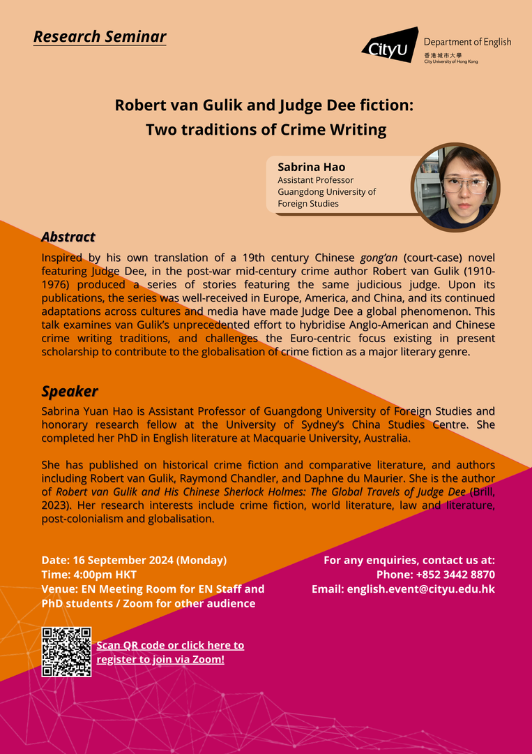Join us for EN Monday Research Seminar by Sabrina Hao of Guangdong University of Foreign Studies on 16 September 2024 at 4pm via Zoom. To register, please click here